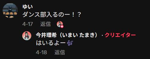 今井環希ちゃんは、TikTokでファンからのコメントに対し、ダンス部にはいることを2025年4月18日に明かしています。